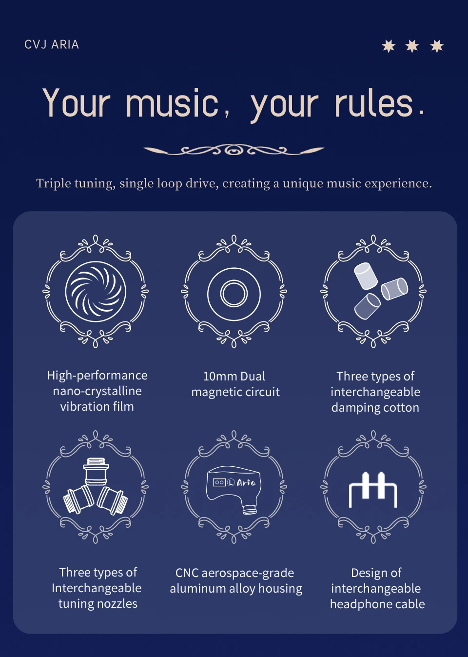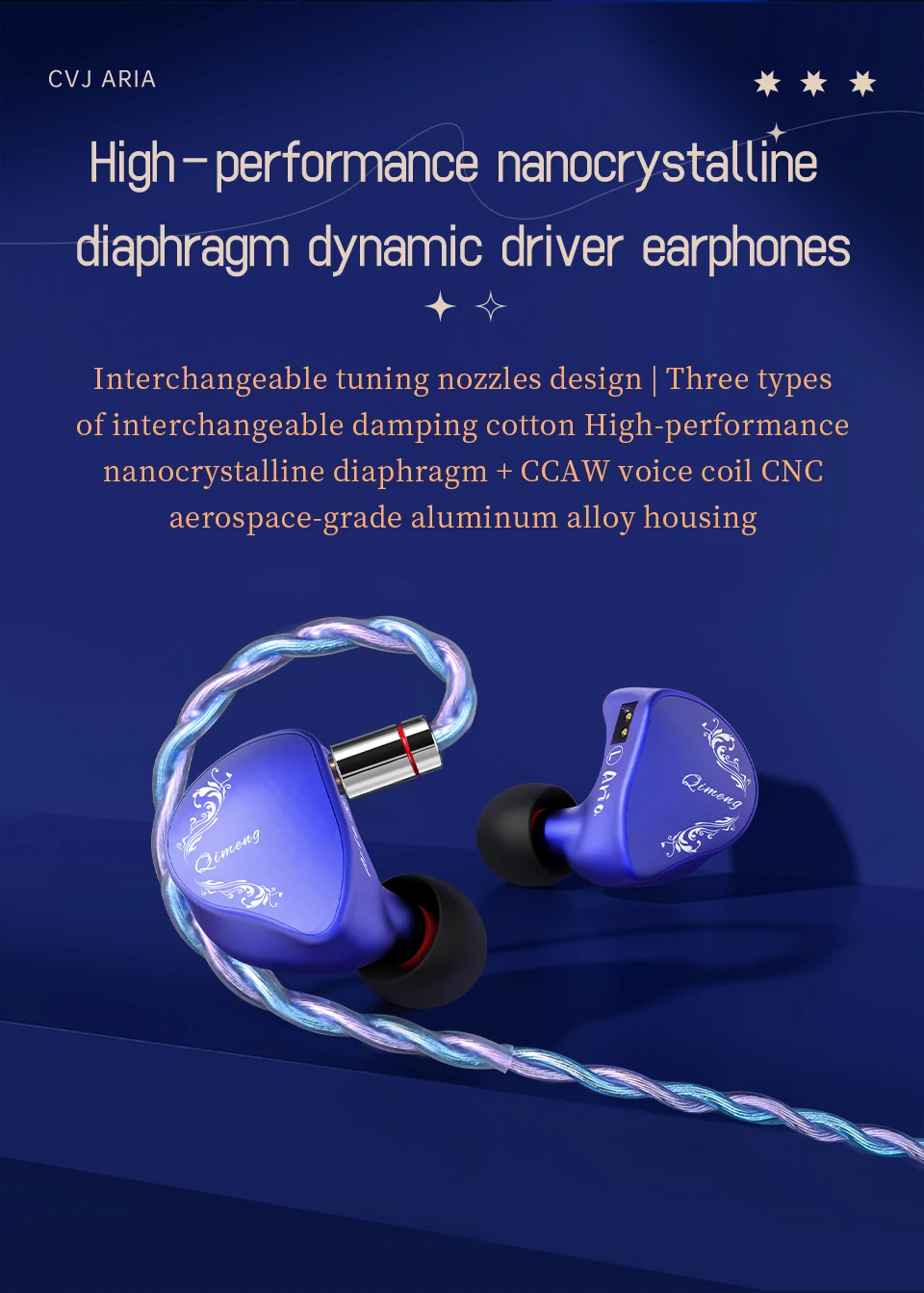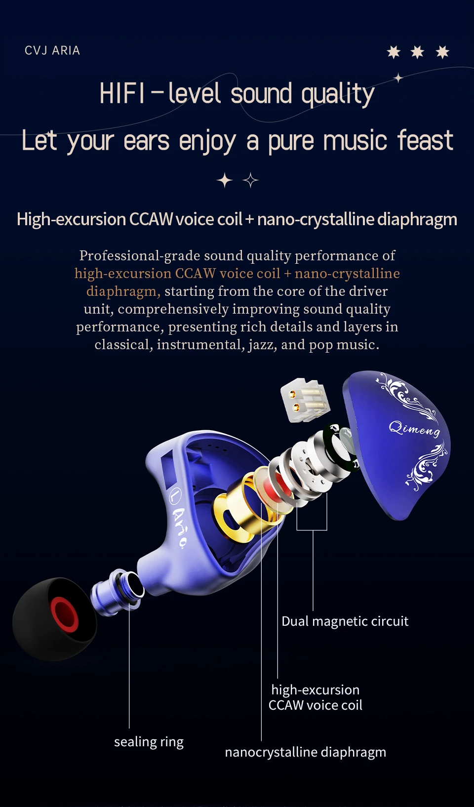 CVJ ARIA 고성능 나노 크리스탈 코팅 DD IEM 하이파이 이어폰, 오디오 애호가를 위한 분리형 케이블 디자인, 10mm